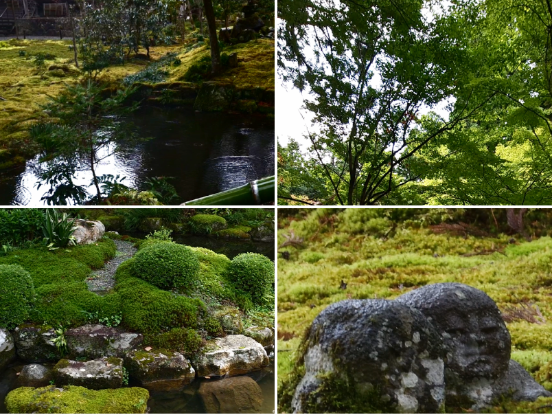 - 산젠인 유세이엔 이끼 정원: 이끼 정원 내 연못 주변의 작은 돌부처상 ‘와라베지조(わらべ地蔵)’를 중심으로, 촉촉하고 푸른 이끼와 단풍나무가 어우러지게 촬영해 보세요. 특히 비 온 뒤 이끼의 색감이 더욱 선명해지며, 안개가 살짝 낀 이른 아침은 신비로운 분위기를 연출합니다.